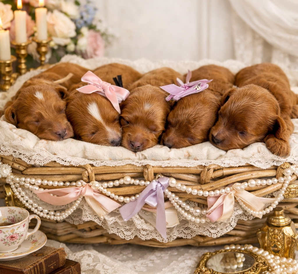 10-15LB estimated adult weights. Perfect curly & plush wavy teddy bear coats in Red (some with white markings).